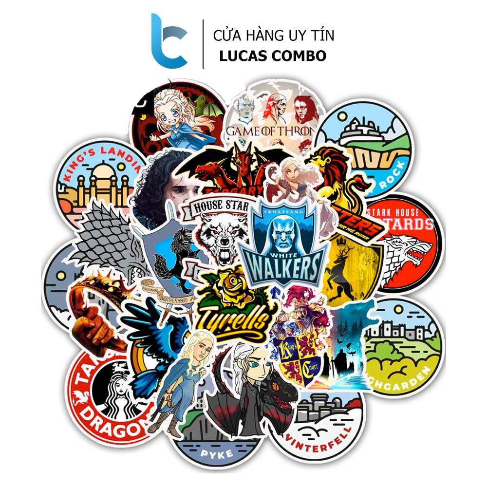 Bộ 50 Sticker Games Of Thrones Dán Trang Trí Macbook Vali, Mũ Bảo Hiểm, Điện Thoại, Laptop