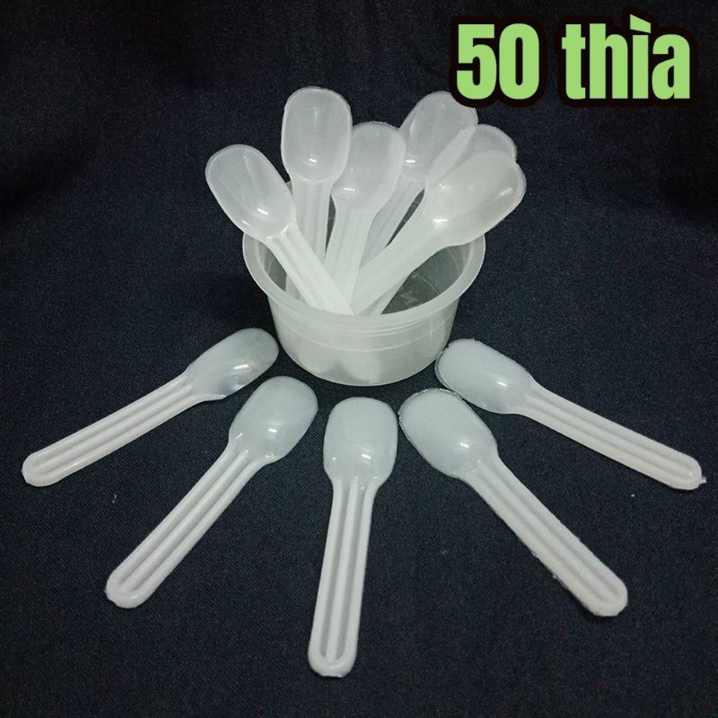 Nhà cửa & Đời sống > Bộ đồ bàn ăn > Bộ dao kéo || 50 thìa muỗng nhỏ nhựa trắng loại xịn dùng ăn sữa chua, bánh flan, kem, rau câuCòn hàng