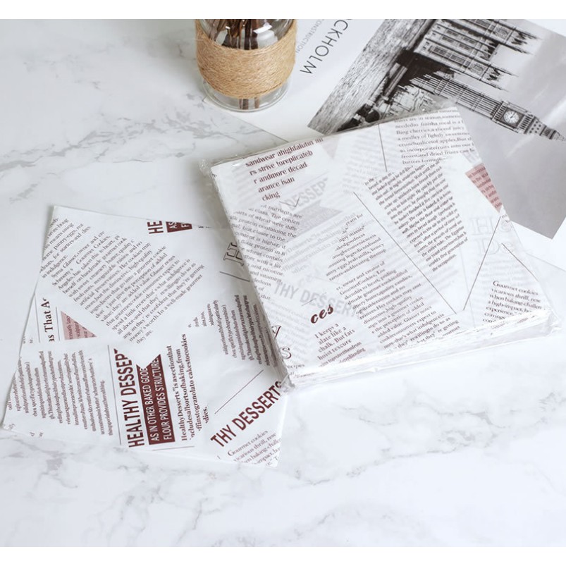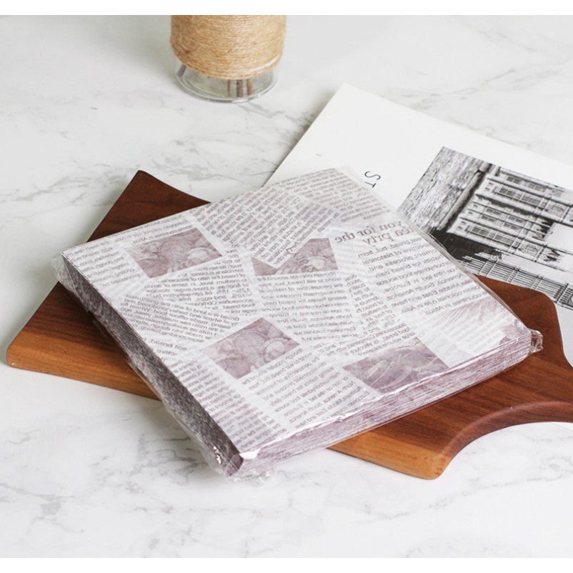 Nhà cửa & Đời sống > Dụng cụ nhà bếp > Khác || 50 tờ Giấy lót có cáng PE hình bài báo 18x18 cmCòn hàng