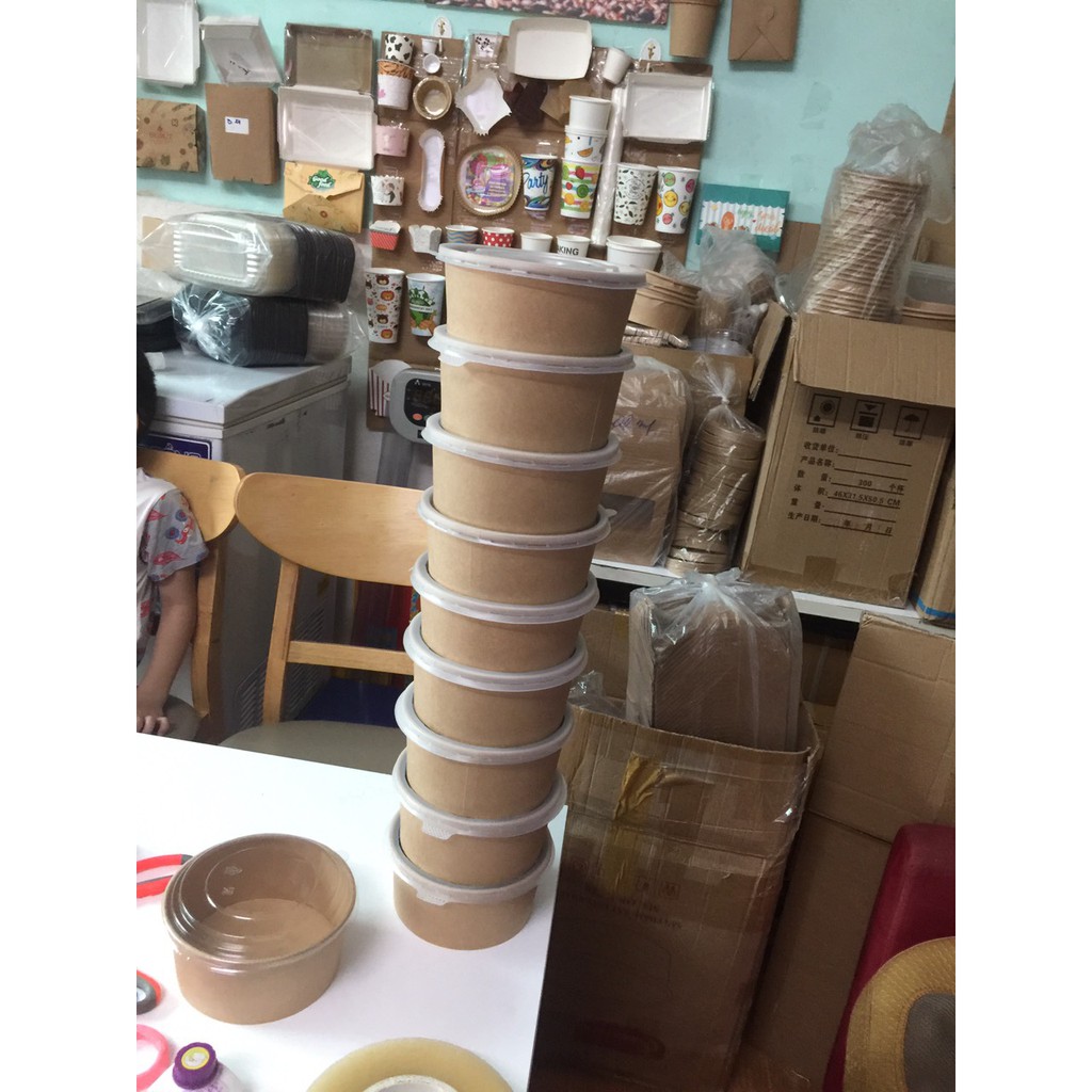 50 Tô kraft chịu nhiệt cao đựng phỏ bún bò ,.nắp nhựa pp