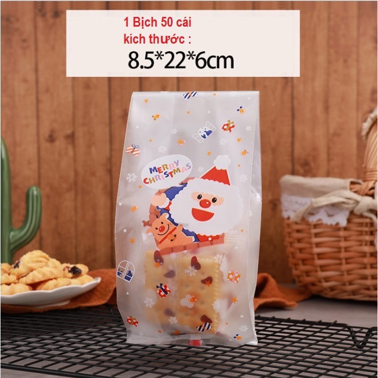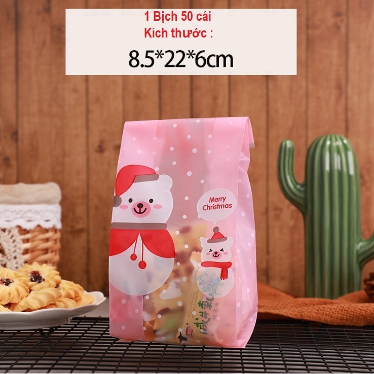 50 Túi dán đựng Bánh Kẹo, Bánh Dứa Siêu Dễ Thương ông già noel và người tuyết