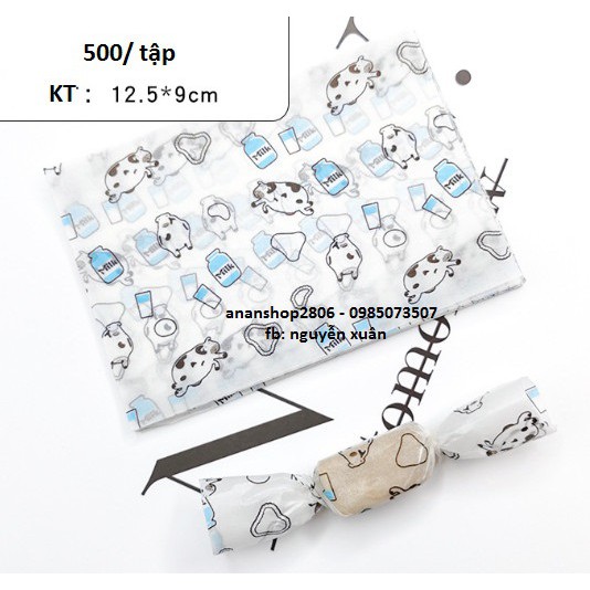 500 tờ giấy gói kẹo, gói bánh, gói mứt tếtKích thước: 12,5cm * 9cm