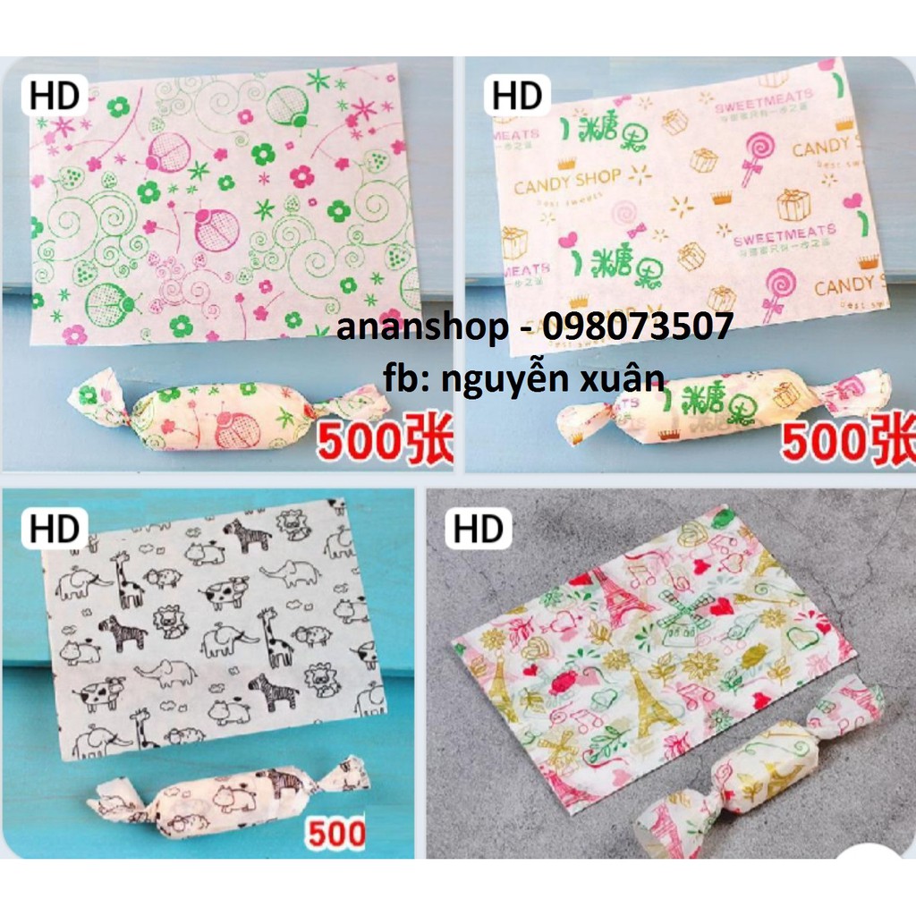 Giới thiệu 500 Tờ giấy gói kẹo nougat/ kẹo / mứt ... (Nhiều mẫu)