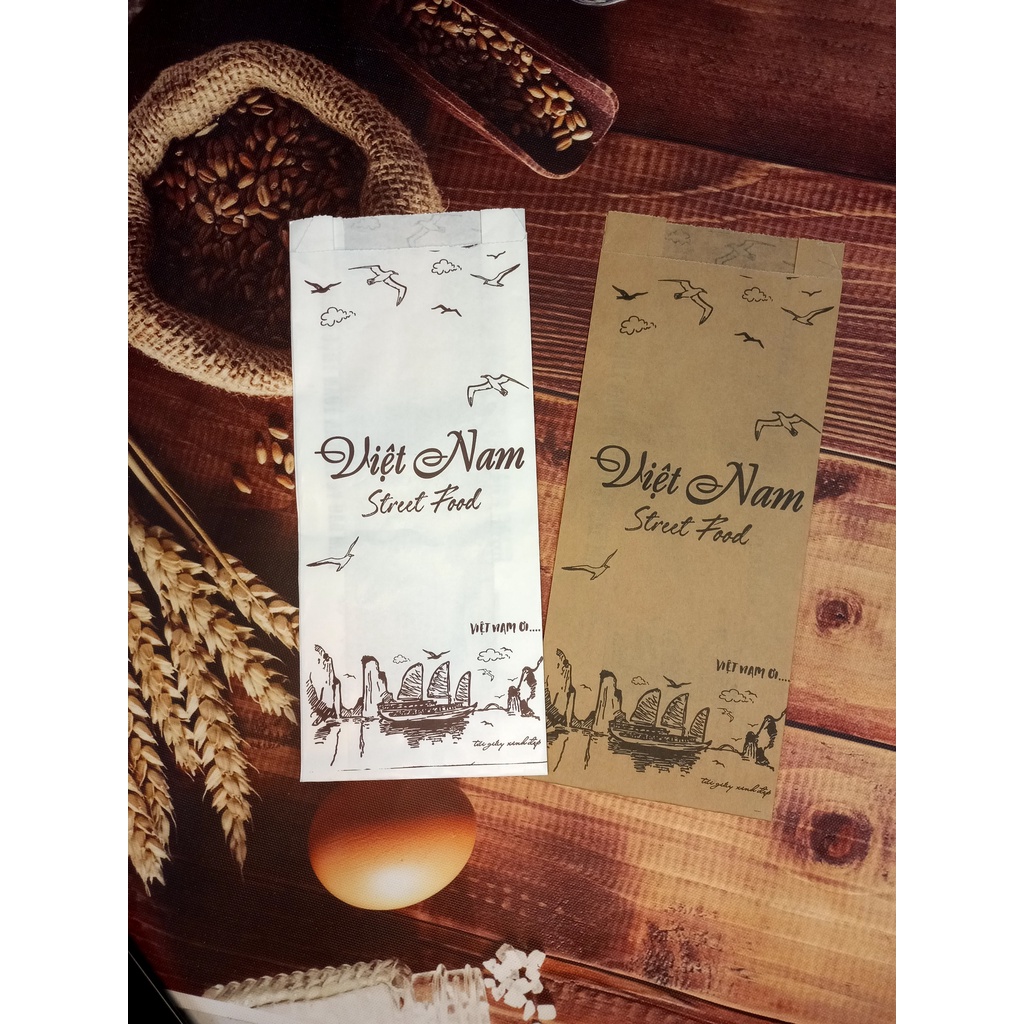 500 Túi Giấy "Ẩm Thực Đường Phố Việt" Đựng Bánh Mì & Các loại bánh... / Giấy Thực Phẩm Kraft
