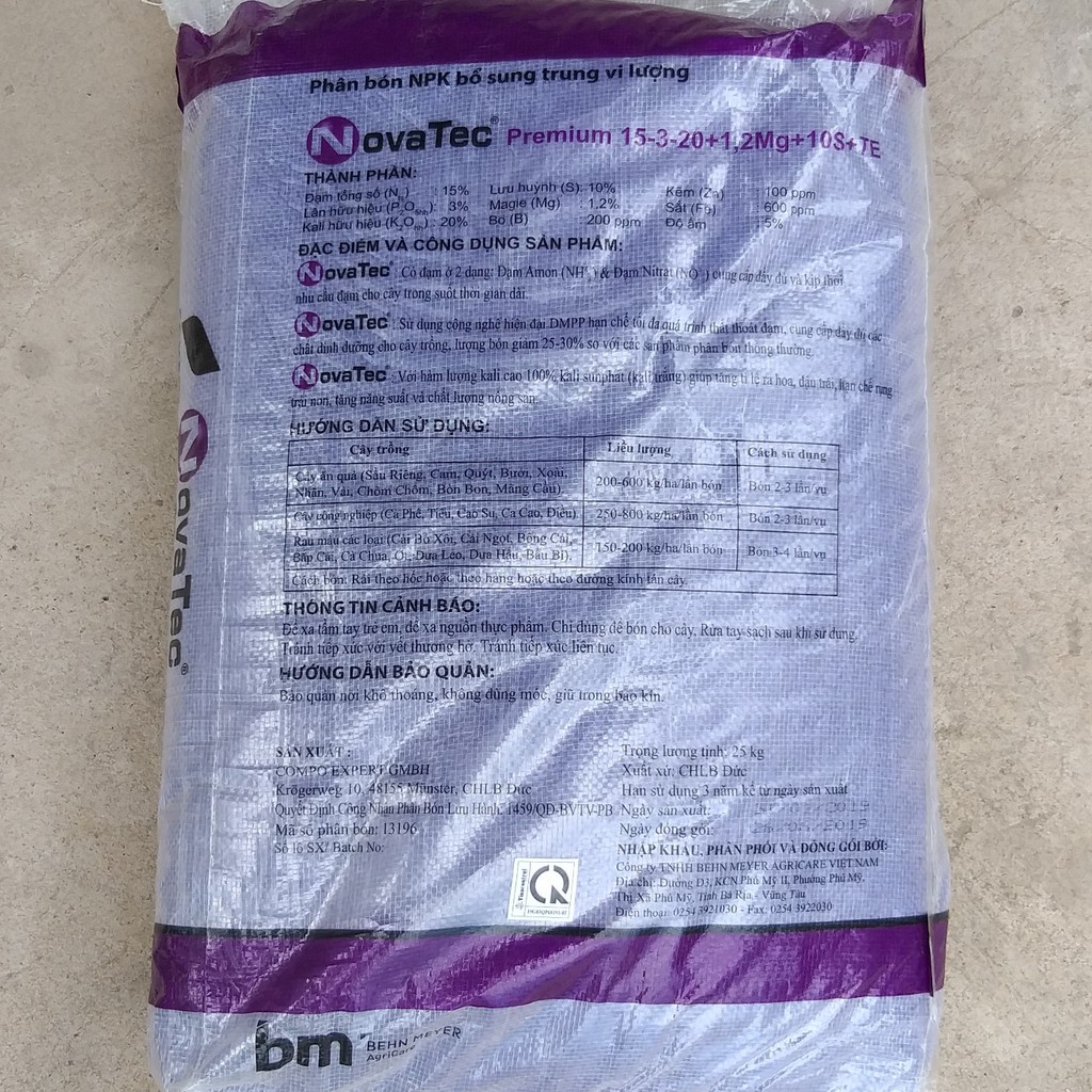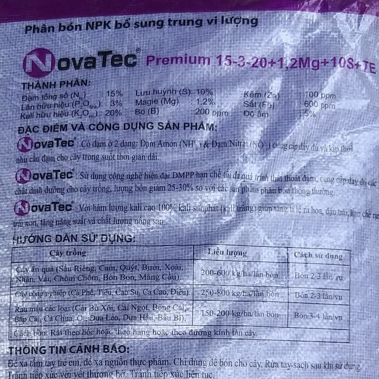 Giới thiệu (500g) Phân bón Novatec Premium 15-3-20+TE, nhập khẩu Đức, dùng công nghệ DMPP, phân tím Đức