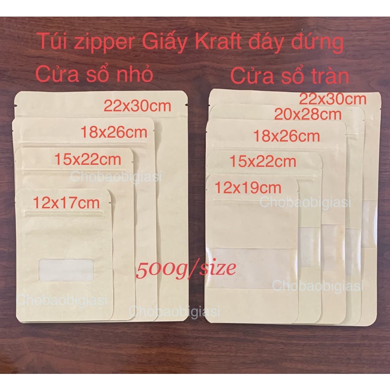 {500g/size (đồng giá)} Túi zipper giấy cửa sổ NHỎ và cửa sổ TRÀN (đủ size)