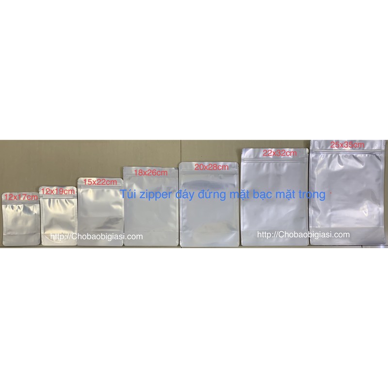 {500g/size} Túi zipper đáy đứng Mặt Bạc Mặt Trong (đủ size - hàng đẹp)