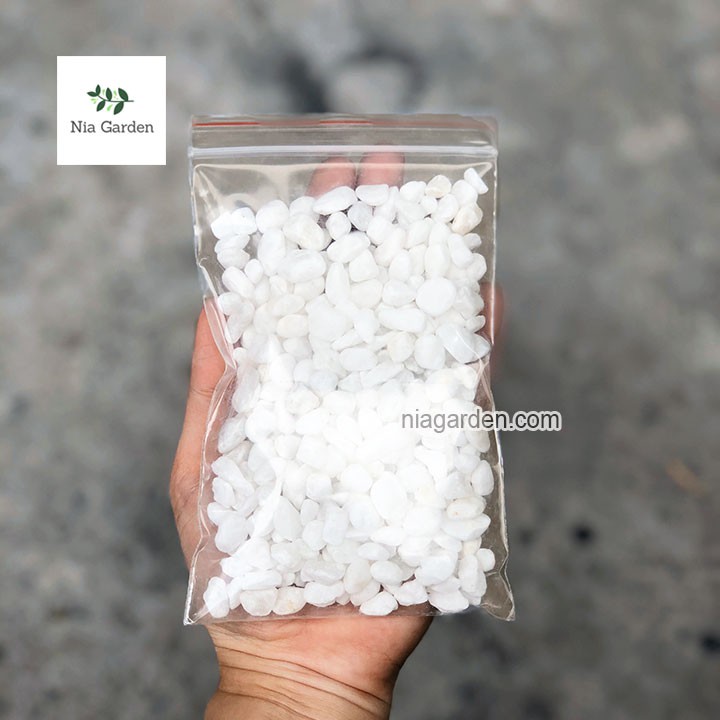 Giới thiệu (500gr) Sỏi trắng tự nhiên size 0.6 - 1cm trang trí chậu cây cảnh hồ cá terrarium Nia Garden N6