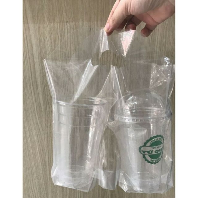 500gr Túi 2 ly Đựng Trà Sữa có vách ngăn