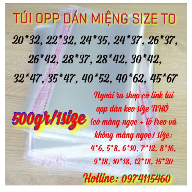 Giới thiệu 500gr túi opp dán miệng size to đựng quần áo