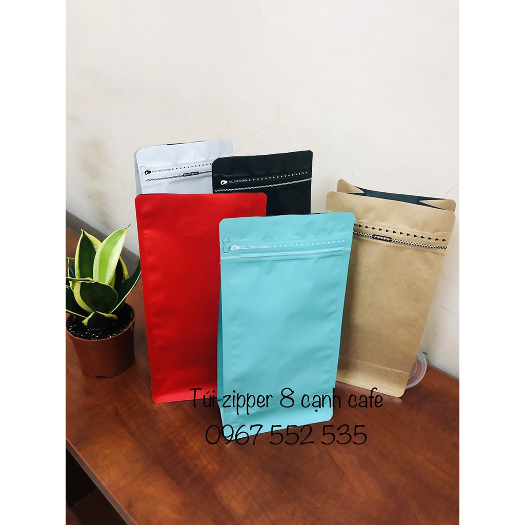 [500gr/size] - túi zip 8 cạnh đựng cafe: màu đỏ, xanh ngọc, giấy, đen, trắng sữa