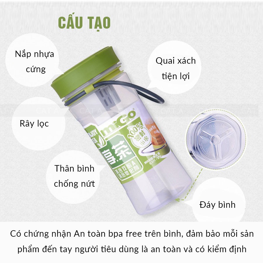 Gia dụng Cát Á xin Giới thiệu quý khách hàng sản phẩm Bình đựng nước bằng Nhựa BPA FREE MIGO Cao cấp - 1521 - An toàn cho sức khỏe, trong suốt, có rây lọc, quai xách tiện lợi [500ML]✅THÔNG SỐ KĨ THUẬT :