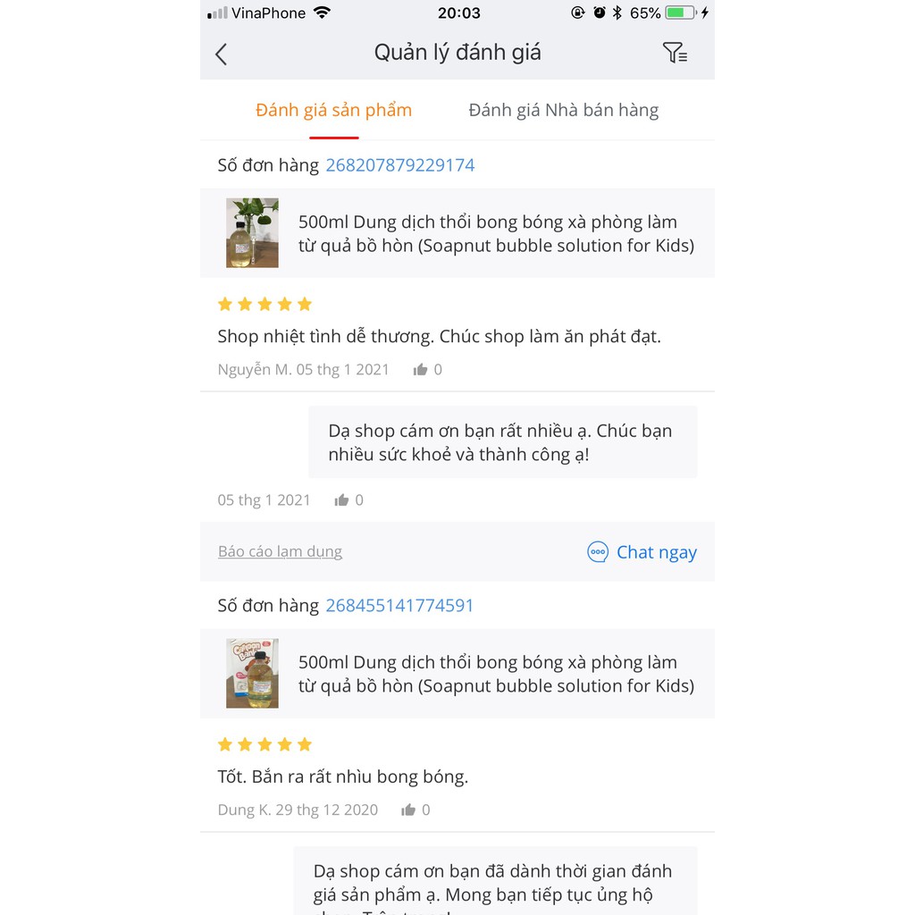 500ml Dung dịch thổi bong bóng xà phòng từ quả bồ hòn, MADE IN VN (100% NATURAL bubble solution for kids)