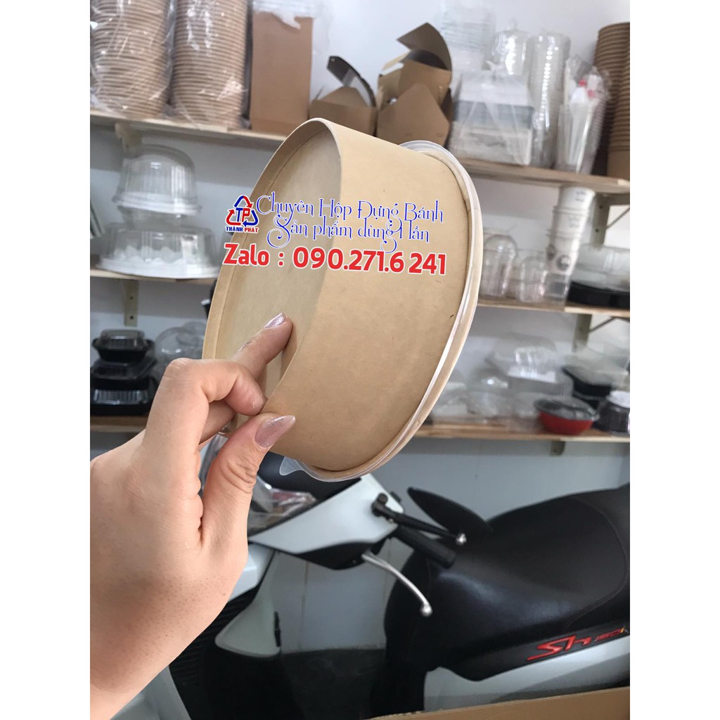Giới thiệu 50c Tô kraft 1300ml nắp PP - Tô kraft 1300ml đựng bánh bông lan trứng muối 16cm nắp PP