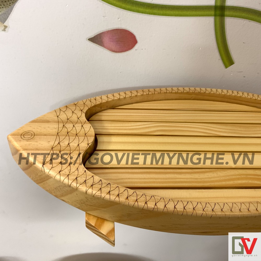 + Khay gỗ trang trí hình con cá được làm từ chất liệu gỗ Thông tự nhiên, chất lượng gỗ đạt tiêu chuẩn vệ sinh an toàn thực phẩm và xuất khẩu sang nhiều nước.