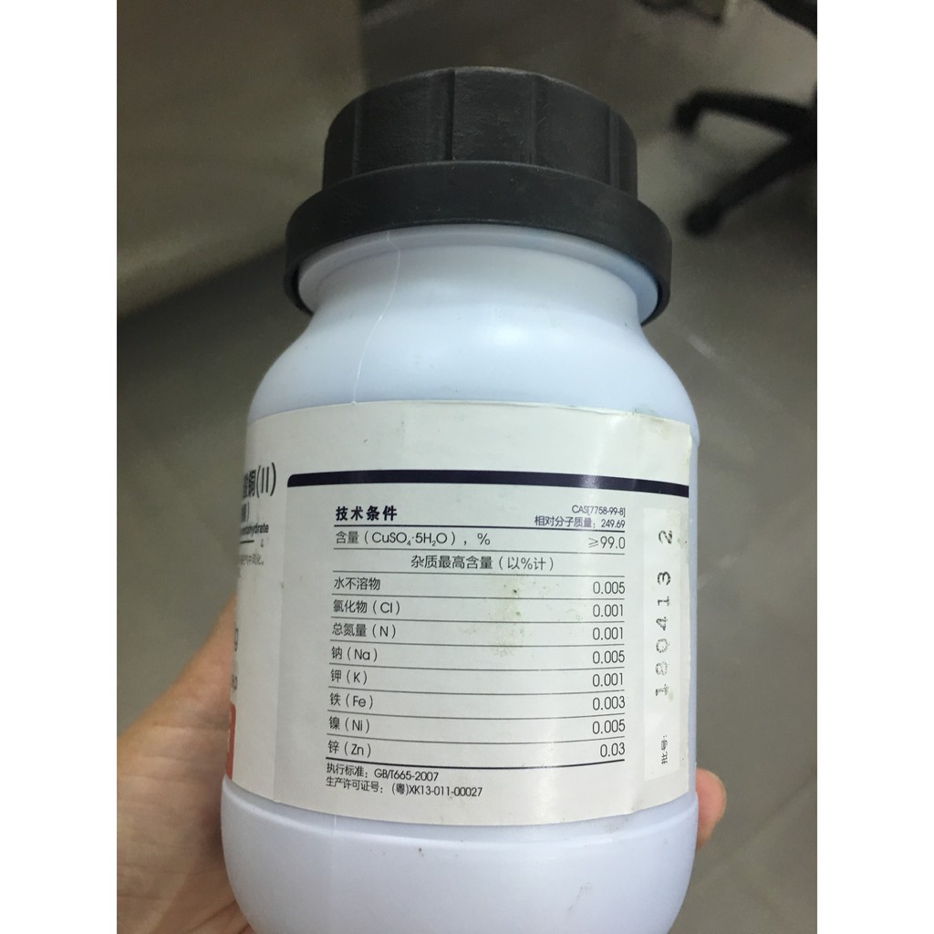 50g hợp chất Đồng (II) sulfat (CuSO4.5H2O), hàng tinh khiết phân tích (nhãn phụ)