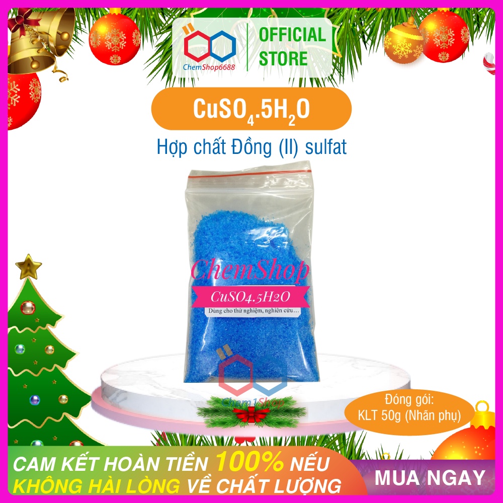 Nhà cửa & Đời sống > Làm vườn > Phân bón || 50g hợp chất Đồng (II) sulfat (CuSO4.5H2O), hàng tinh khiết phân tích (nhãn phụ)Còn hàng