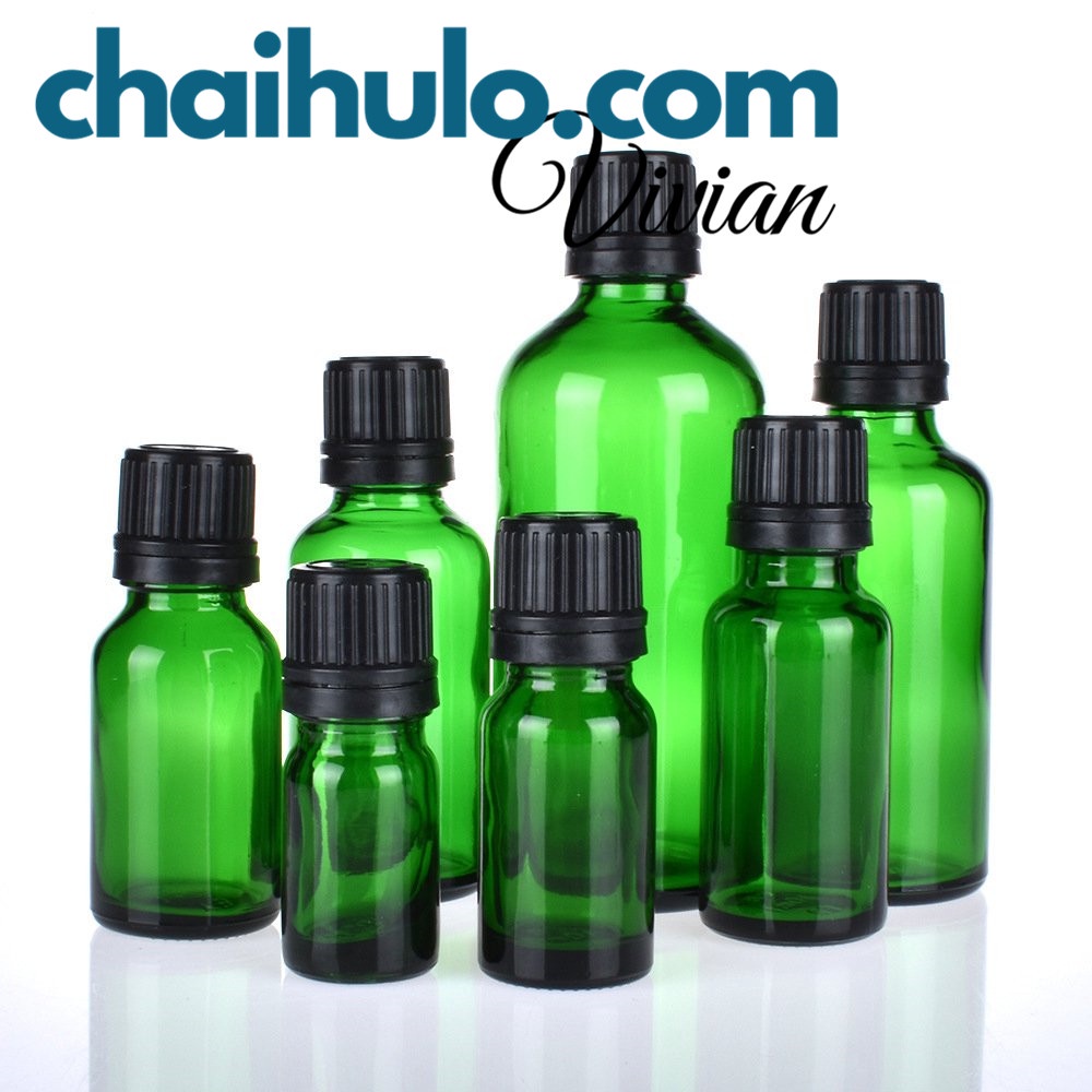 Giới thiệu 50ml Chai thủy tinh, lọ đựng tinh dầu serum thân xanh nắp vặn nhựa