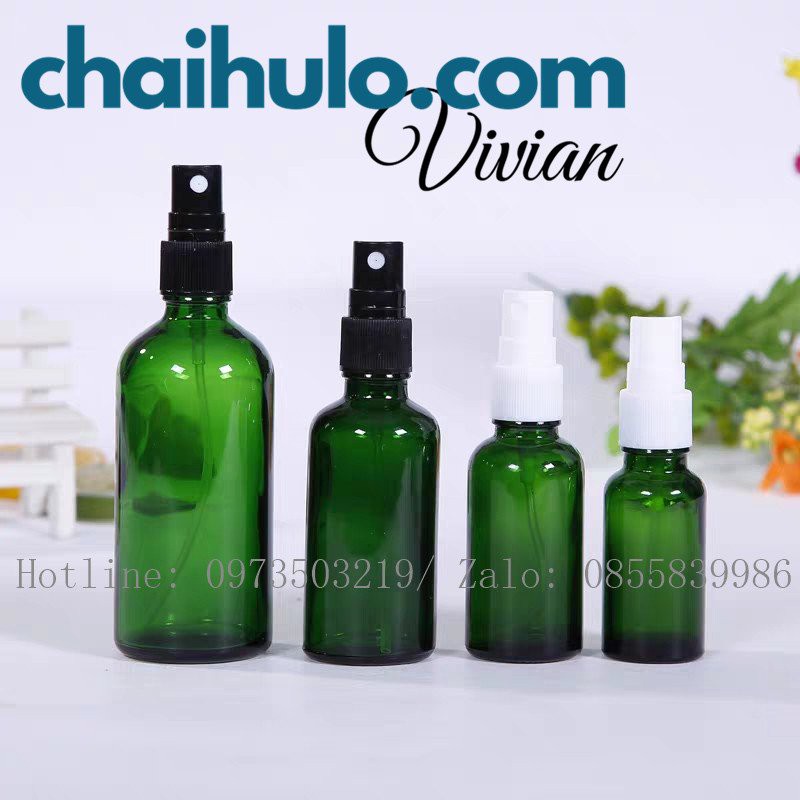 50ml - Chai xịt phun sương, thủy tinh màu xanh lá
