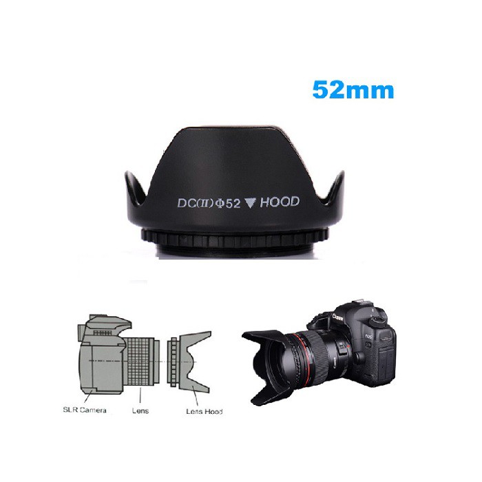 Chất liệu: nhựa ABSLoa che nắng phi 52mm phù hợp với ống kính tất cả những ống kính phi 52mm
