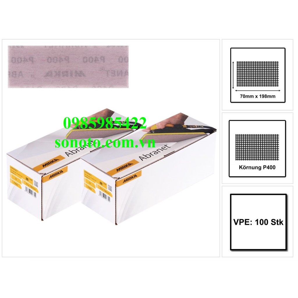 Nhà cửa & Đời sống > Dụng cụ & Thiết bị tiện ích > Dụng cụ > Giấy nhám, máy chà nhám và phụ kiện || 5415005041 Nhám lưới chữ nhật Mirka Abranet 70x198mm P400 ( Sơn oto xe máy ) Giáp lưới chà sơn nhám chà thôCòn hàng