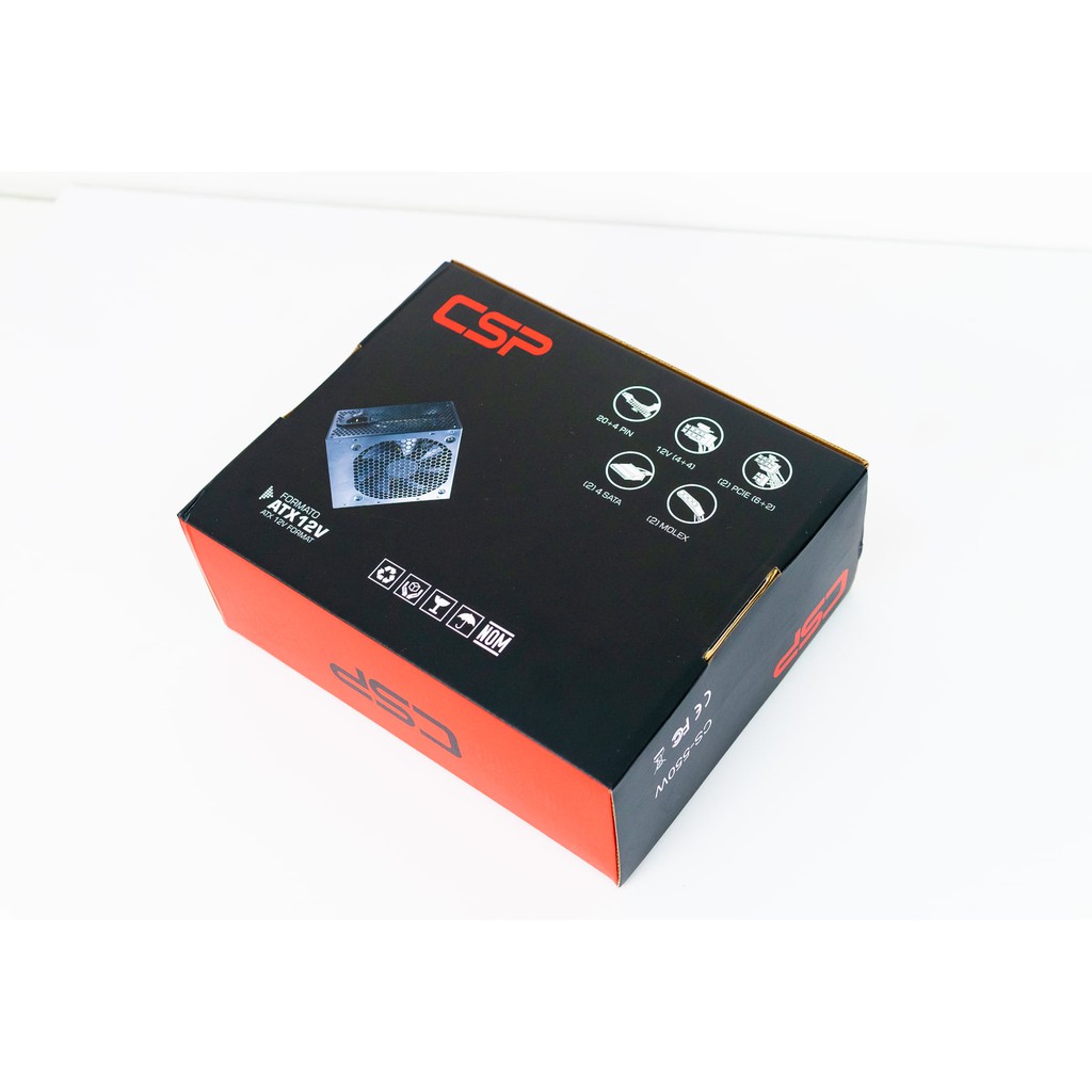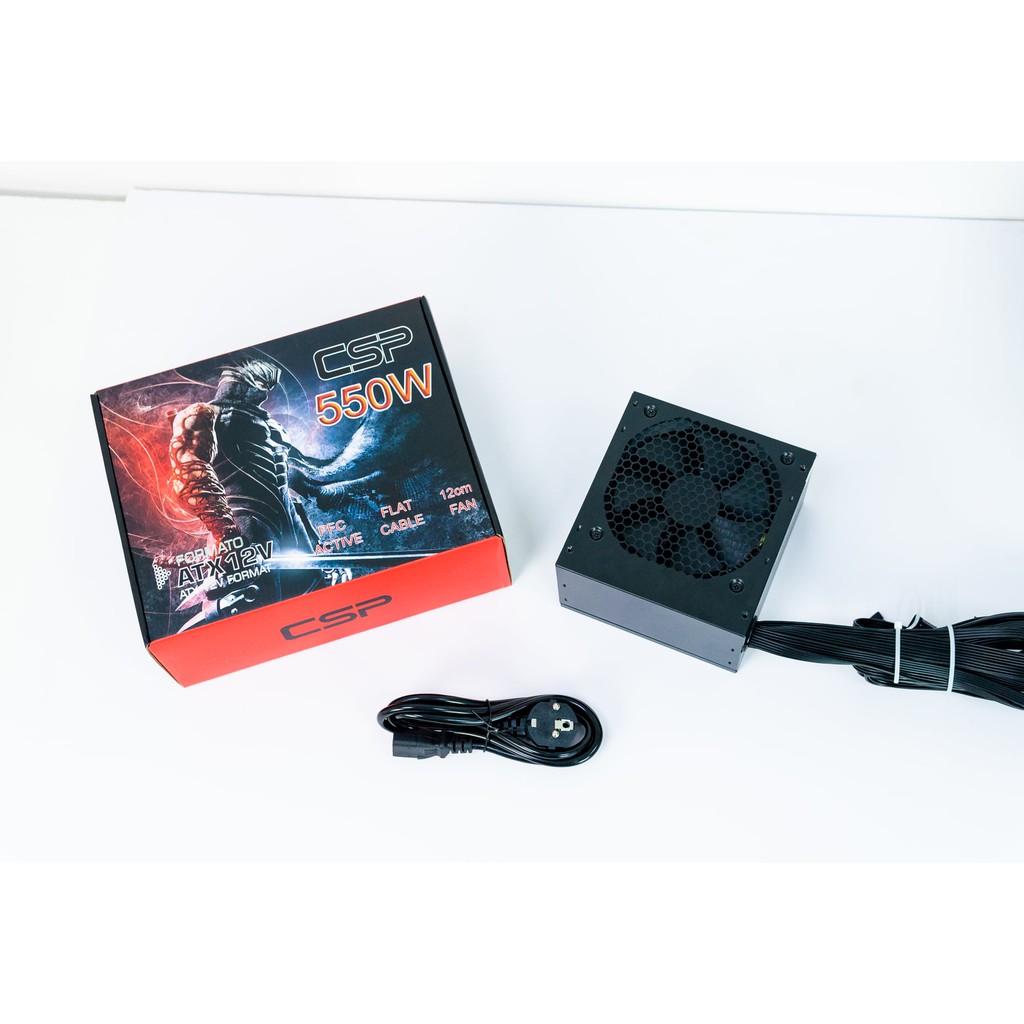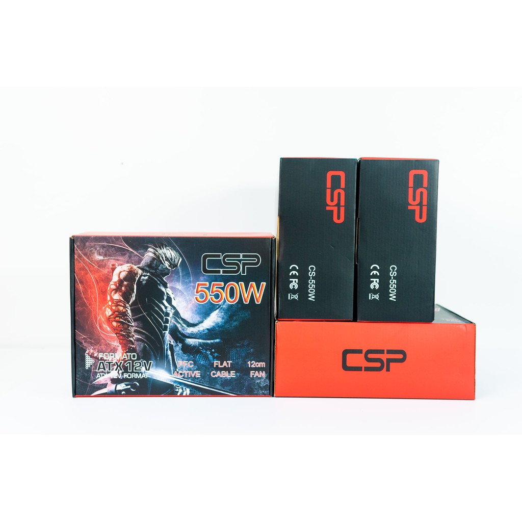 Nguồn 550w CSP Active PFC công suất thực chuẩn 550w cầm nặng trịch hàng chính hãng new full box bảo hành 2 năm có chân nguồn 8pin cho CPU, có 2 chân nguồn phụ 8pin chạy vga khủng GTX, RX các loại GTX650 GTX750ti GTX960Ti GTX1050ti GTX1060 GTX1080ti GTX1660s GTX1660 RX570 RX580...Fan 12cm chạy mát siêu êm có công tắc bật tắt nguồn phía sau giá bán lẻ siêu tốt quá ngon cho anh em chiến game lắp phòng net chạy ổn 24/24h.Bộ nguồn CSP CS550 được trang bị vỏ hộp nổi bật với tông đỏ Gaming, đi kèm với nó là dây nguồn dẹt dài chất lượng.