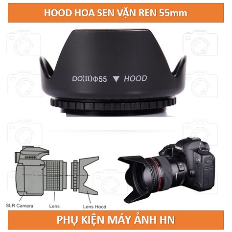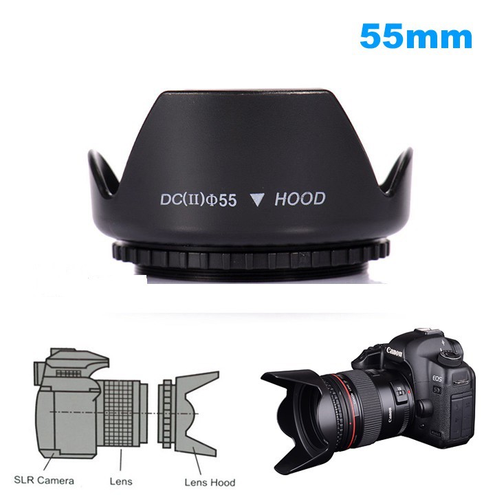 Chất liệu: nhựa ABSLoa che nắng phi 55mm phù hợp với ống kính tất cả những ống kính phi 55mm