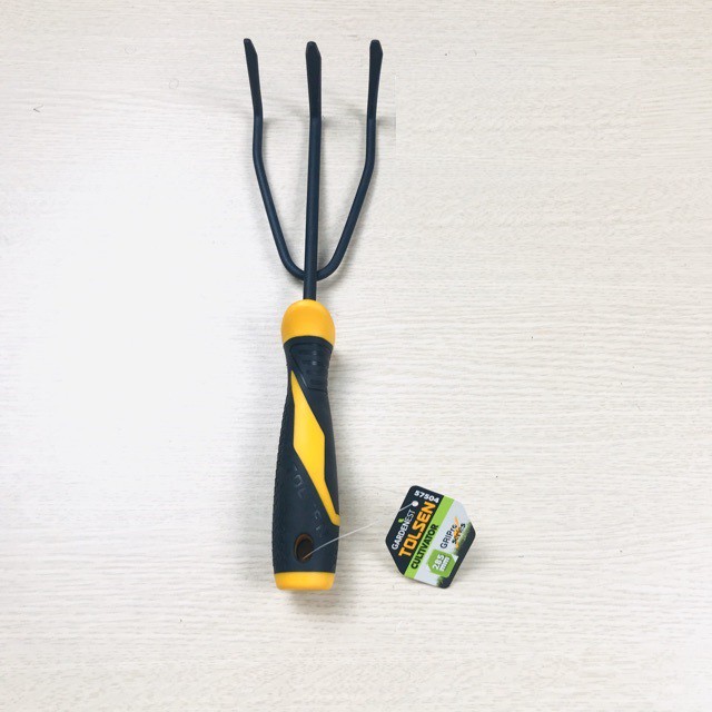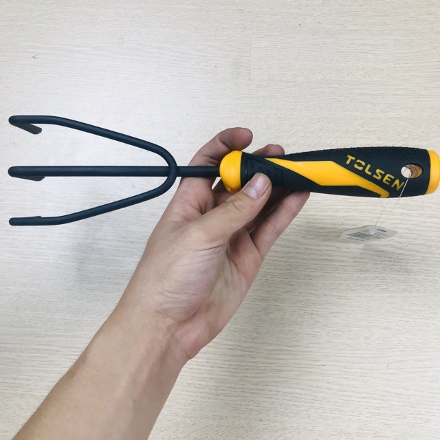 #Cây cào đất làm vườn 285mm tolsen mã số 57504 :Cào làm vườn có cấu tạo như chiếc lược thưa 3 răng. Chuyên dùng để xới, cào đất, làm đất tơi xốp.tạo lỗ, tạo rãnh để gieo hạt...hoặc dùng để thu gom lá khô, để loại bỏ các loại đá dưới gốc..