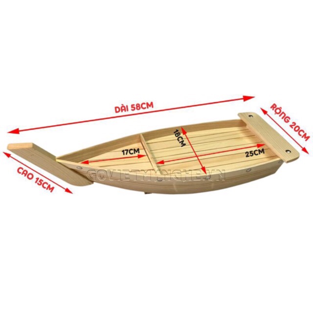 + Khay thuyền gỗ kích thước: Dài 58cm x Rộng 18cm x Cao 15cm.