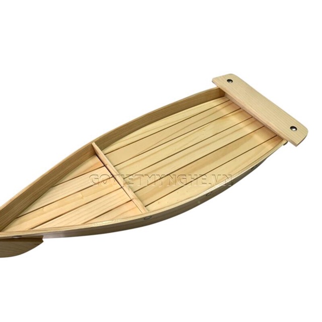 Giới thiệu [Dài 58cm - Hàng chuẩn Nhật] Khay thuyền gỗ đựng sushi sashimi - khay thuyền gỗ để setup món lẩu - Gỗ thông tự nhiên