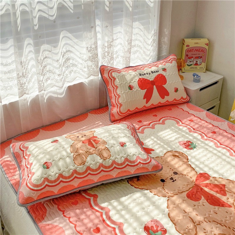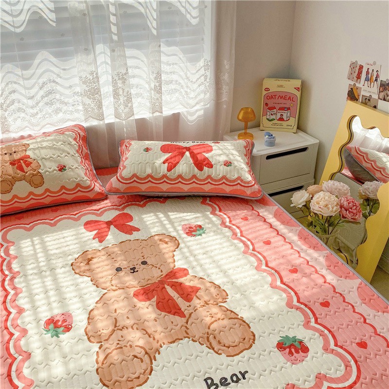 Nhà cửa & Đời sống > Chăn ga gối nệm > Chiếu điều hòa || [ 5D HOẠ TIẾT] Bộ Chiếu Điều Hoà Kèm 2 Vỏ Gối Cao Su 5D Hoạ Tiết Mẫu GẤU HỒNGCòn hàng
