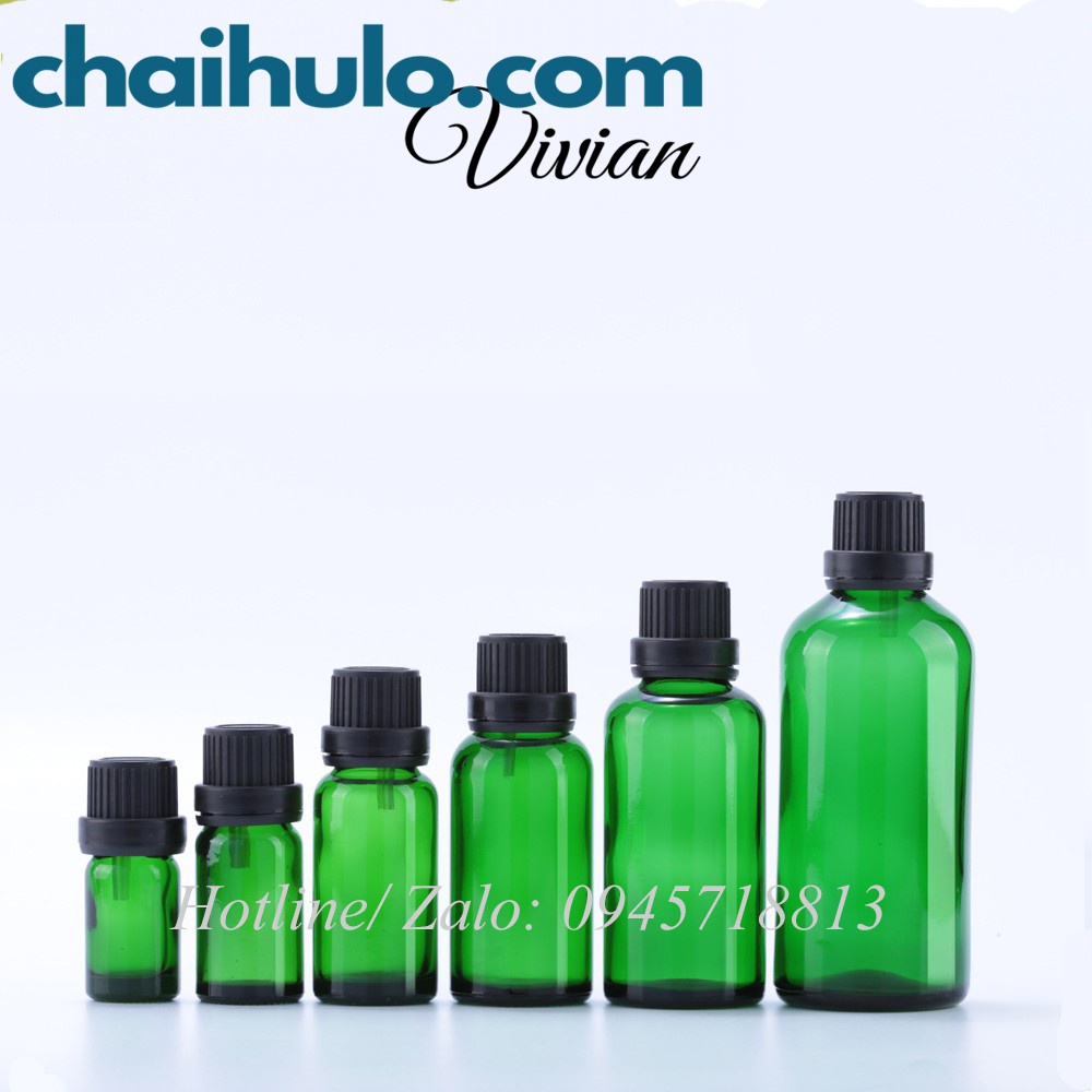 Giới thiệu 5ml – 10ml Chai thủy tinh, lọ đựng tinh dầu serum thân xanh nắp vặn nhựa