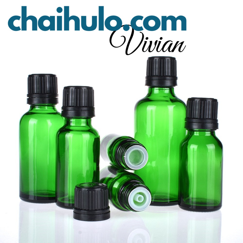 Chai thủy tinh, lọ đựng tinh dầu serum thân xanh nắp vặn nhựa• Xuất xứ: Trung Quốc