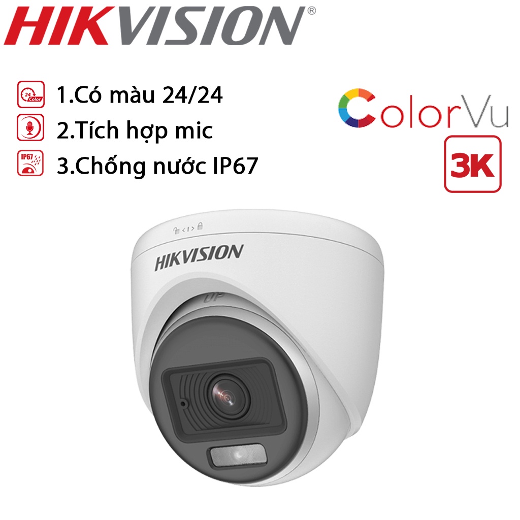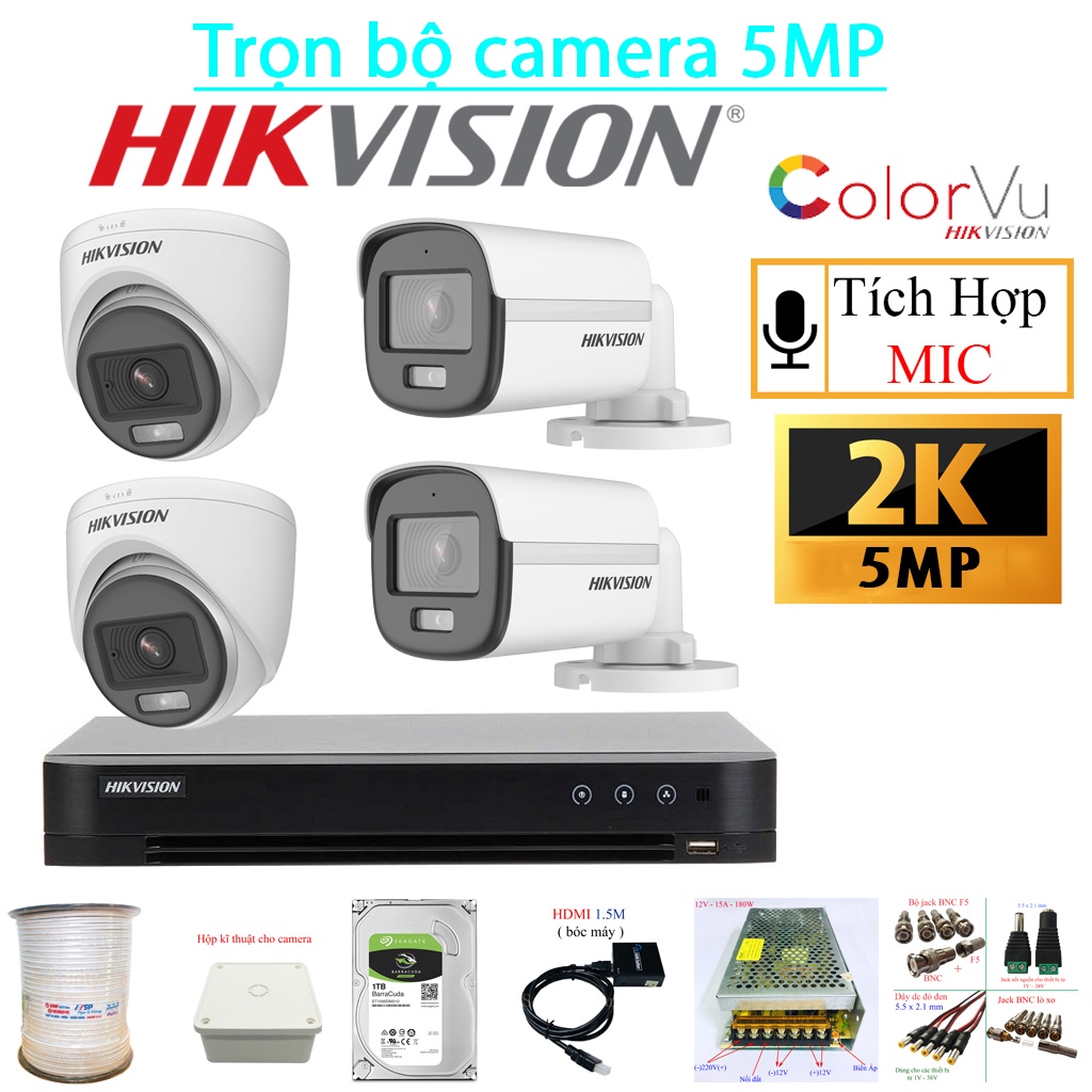 Giới thiệu {5MP / CÓ MÀU 24/24 + CÓ MIC} Trọn bộ 4 mắt Camera Hikvision chính hãng, có màu + mic 24/24, đầy đủ phụ kiện