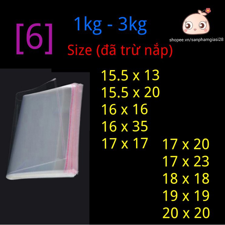 (6) 1kg - 3kg Túi bóng kiếng OPP trong có keo dán SIZE NHỎ (Có 6 bài đăng cho đầy đủ size)
