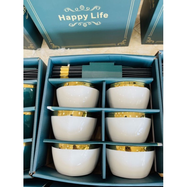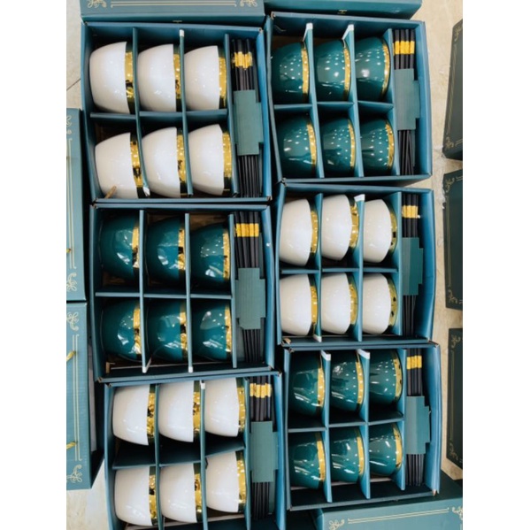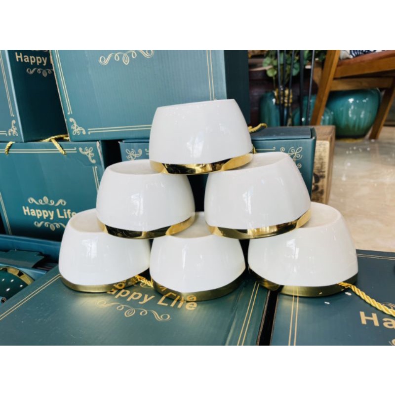 Nhà cửa & Đời sống > Bộ đồ bàn ăn > Tô || Bộ 6 Bát ăn cơm, chén ăn cơm sứ Viền Vàng hình trụ tặng kèm 6 đôi đũa - bát decor phong cách Hàn Quốc quà tặng ý nghĩaCòn hàng
