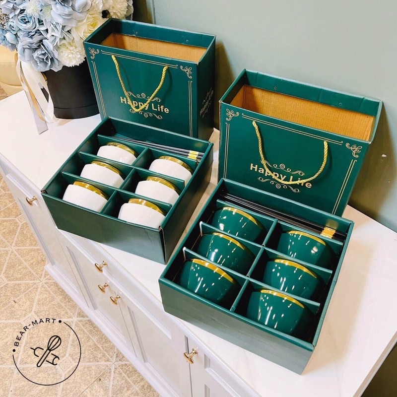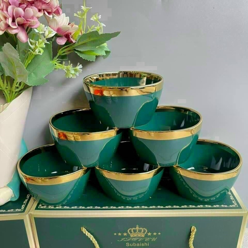 Nhà cửa & Đời sống > Bộ đồ bàn ăn > Tô || Bộ 6 Bát Sứ Viền Mạ Vàng Cao Cấp Happy Life Tặng Kèm ĐũaCòn hàng