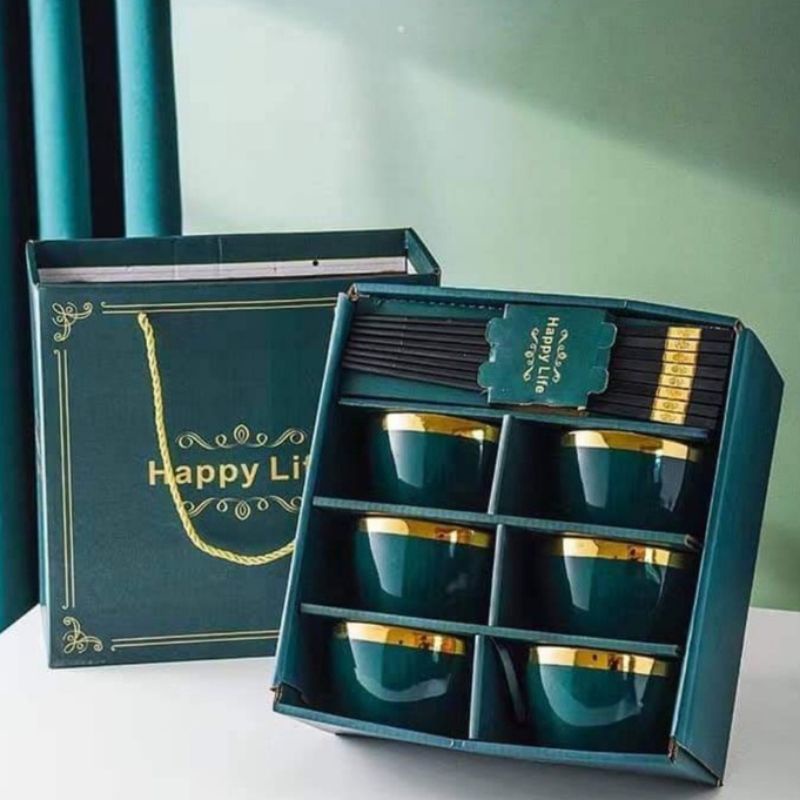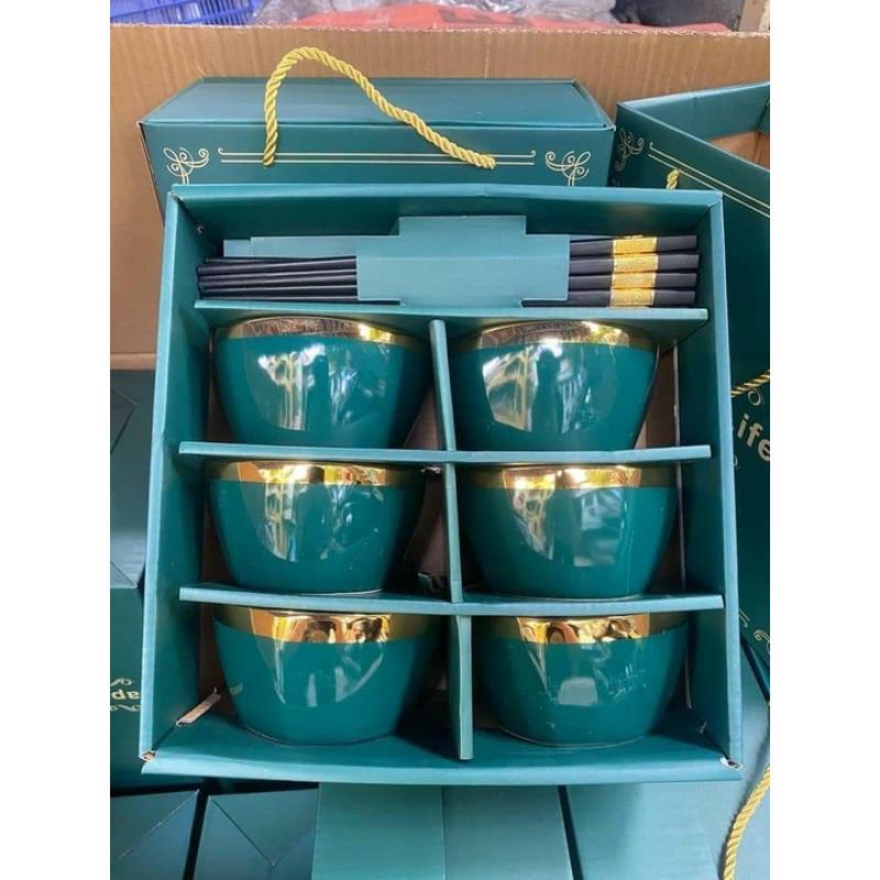 Nhà cửa & Đời sống > Bộ đồ bàn ăn > Tô || Bộ 6 Bát Sứ Xanh Viền Vàng Cao Cấp Kèm ĐũaCòn hàng