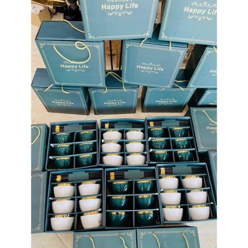 Bộ 6 bát sứ viền mạ vàng cao cấp, tặng kèm đũa phong cách Nhật.🎁Bộ bát kèm đũa gồm 6 bát và 6 đôi đũa, có hộp sách sang trọng có thể llàm quà biếu quá tặng cực hợp lý luôn ạ.