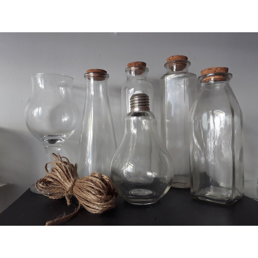 Nhà cửa & Đời sống > Trang trí nhà cửa > Bình trang trí || 6 bình thủy tinh & 50m dây thừng trang tríCòn hàng