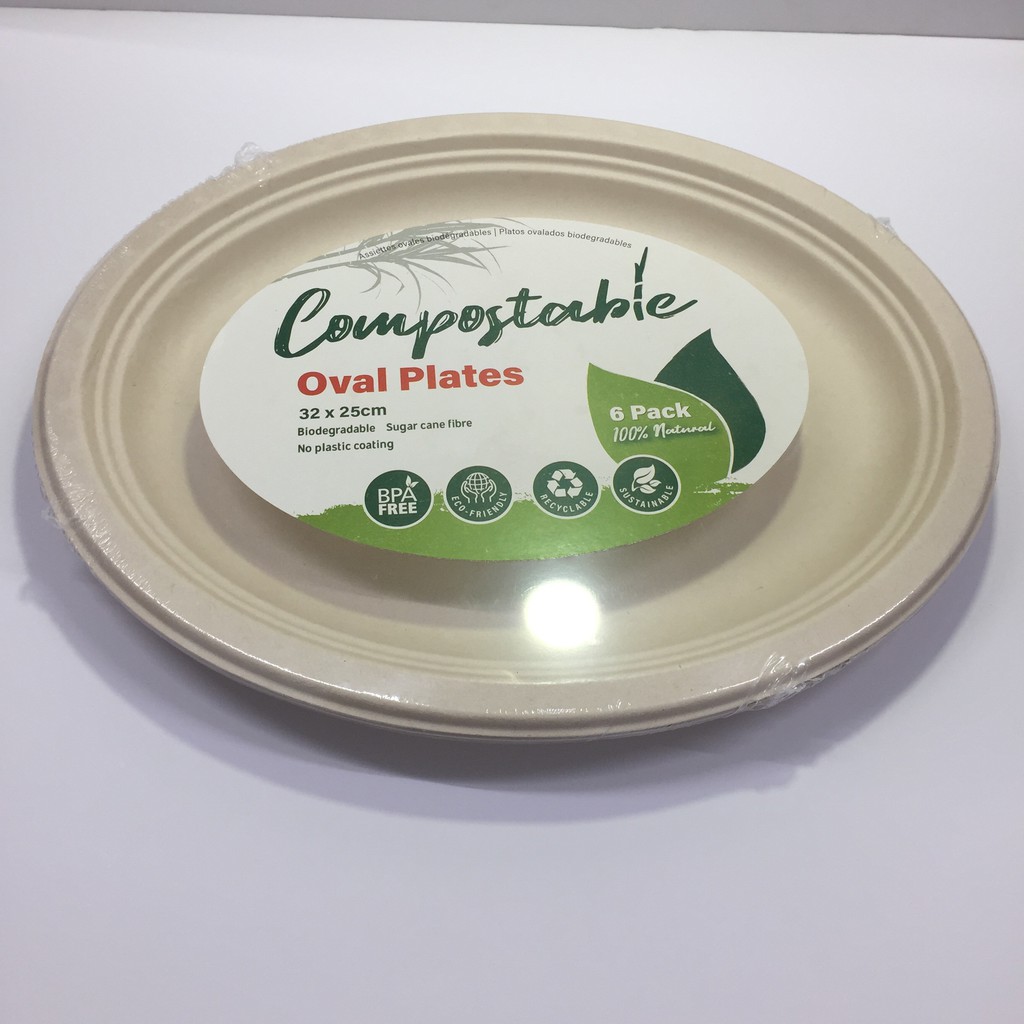 Bộ 6 cái đĩa oval bã mía tự phân huỷ UBL thân thiện với môi trường, phân hủy nhanhChất liệu bã mía giúp khay cứng cáp, không bị móp