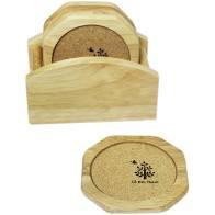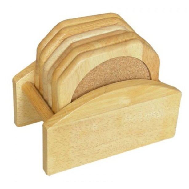 Bộ lót ly 6 cái, vát góc, gỗ cao su lót bần Gỗ Đức Thành - 23201- Kích thước: 12.5 x 11 x 8 cm