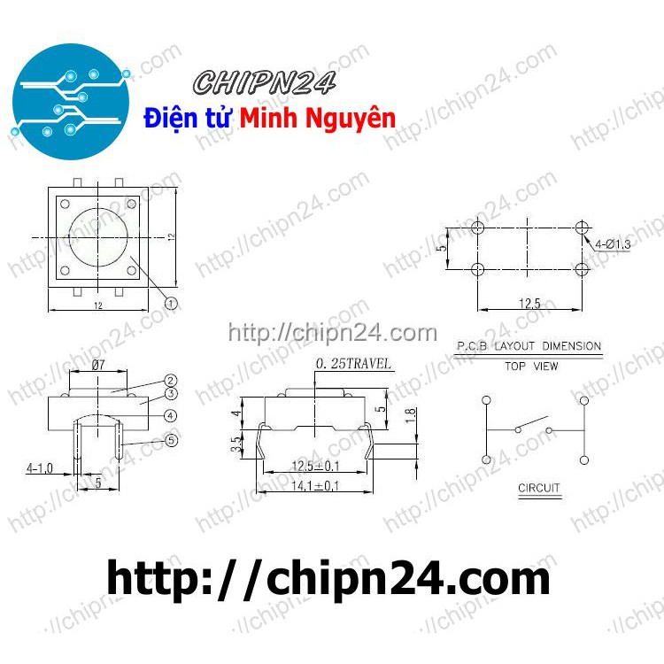 Nút nhấn 4 chân 12x12x5mmMô tả: