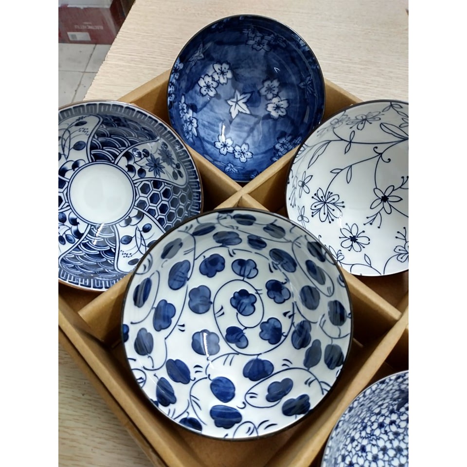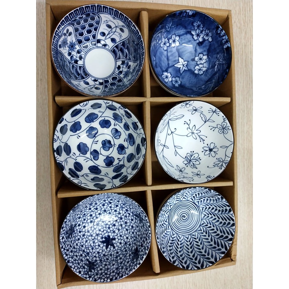 Bộ 6 chén/ bát cơm sứ hoa văn sắc xưa giả cổ phong cách Nhật Bản kèm hộp đẹp không tì vết