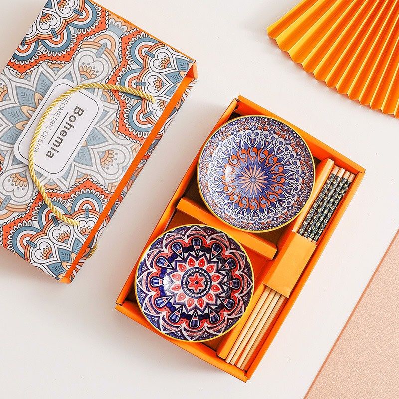 Nhà cửa & Đời sống > Bộ đồ bàn ăn > Tô || Bộ 6 chén/bát sứ và 6 đôi đũa ăn cơm cao cấp, họa tiết SakuraCòn hàng