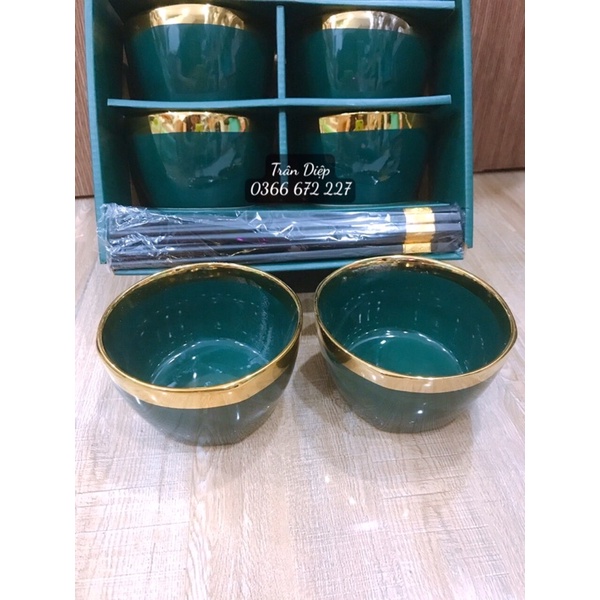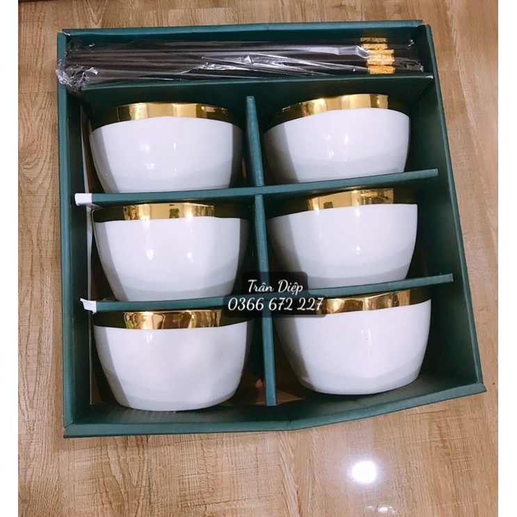 Bộ 6 chén đũa sứ viền vàng cao cấp:* Bộ gồm 6 chén-6 đôi đũa