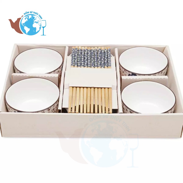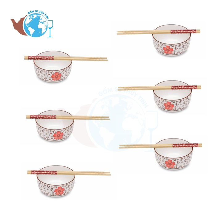 - BỘ CHÉN SỨ ĐŨA HOA VĂN NHẬT BẢN bao gồm : 6 chén cơm ( bát ) , 6 đôi đũa