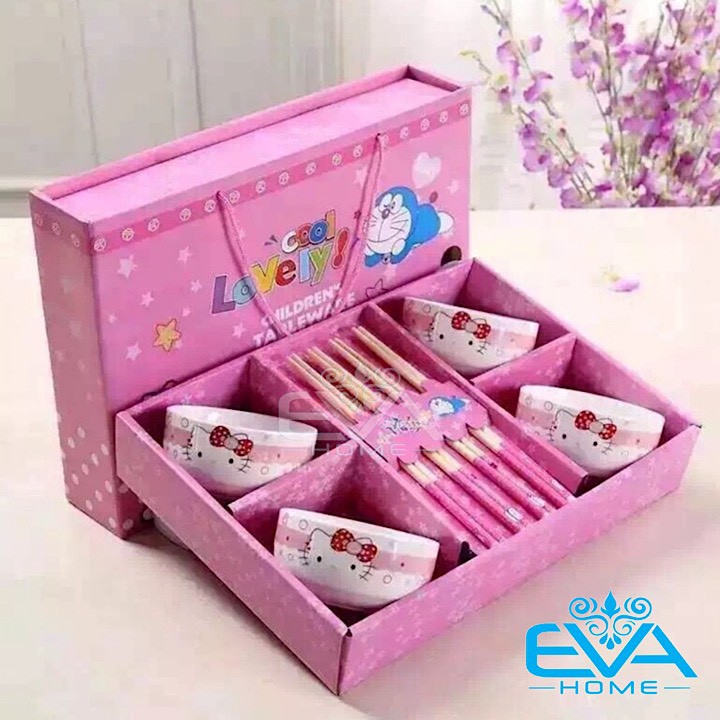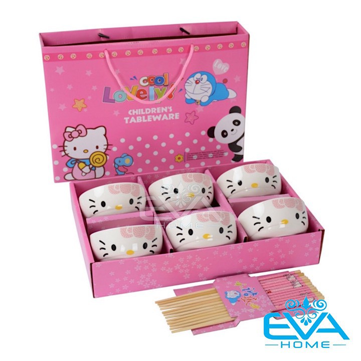 *** Bộ sản phẩm gồm : 6 chén và 6 đũa in hình hoạt hình mèo hồng