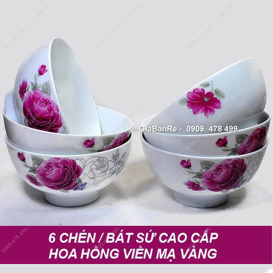 Nhà cửa & Đời sống > Bộ đồ bàn ăn > Tô || Bộ 6 Chén Sứ Mạ Vàng Viền Hoa Hồng Cao Cấp - 6041Còn hàng