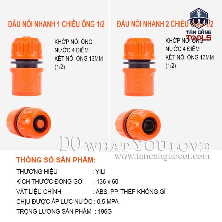 + Đầu Nối Nhanh 2 Chiều 1/2 inches ( phi 21 )